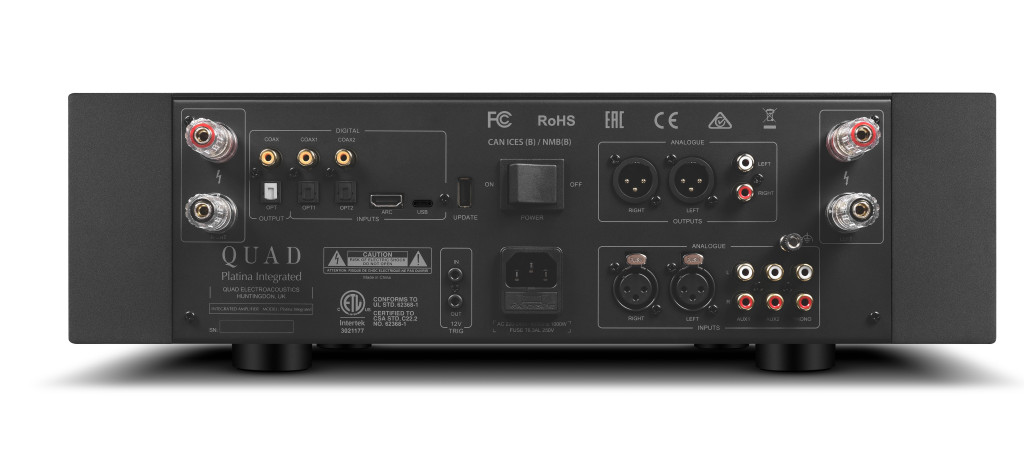 Analóg tartományA QUAD PLATINA INTEGRATED analóg forrásokat képes fogadni két pár RCA bemeneten, egy pár szimmetrikus XLR bemeneten és egy dedikált, nagy teljesítményű MM/MC phono előerősítőn keresztül. Minden analóg bemenet kiválasztható a távirányítóval, és mindegyik független bemeneti érzékenységet kínál a kiterjedt grafikus felhasználói felületen keresztül.